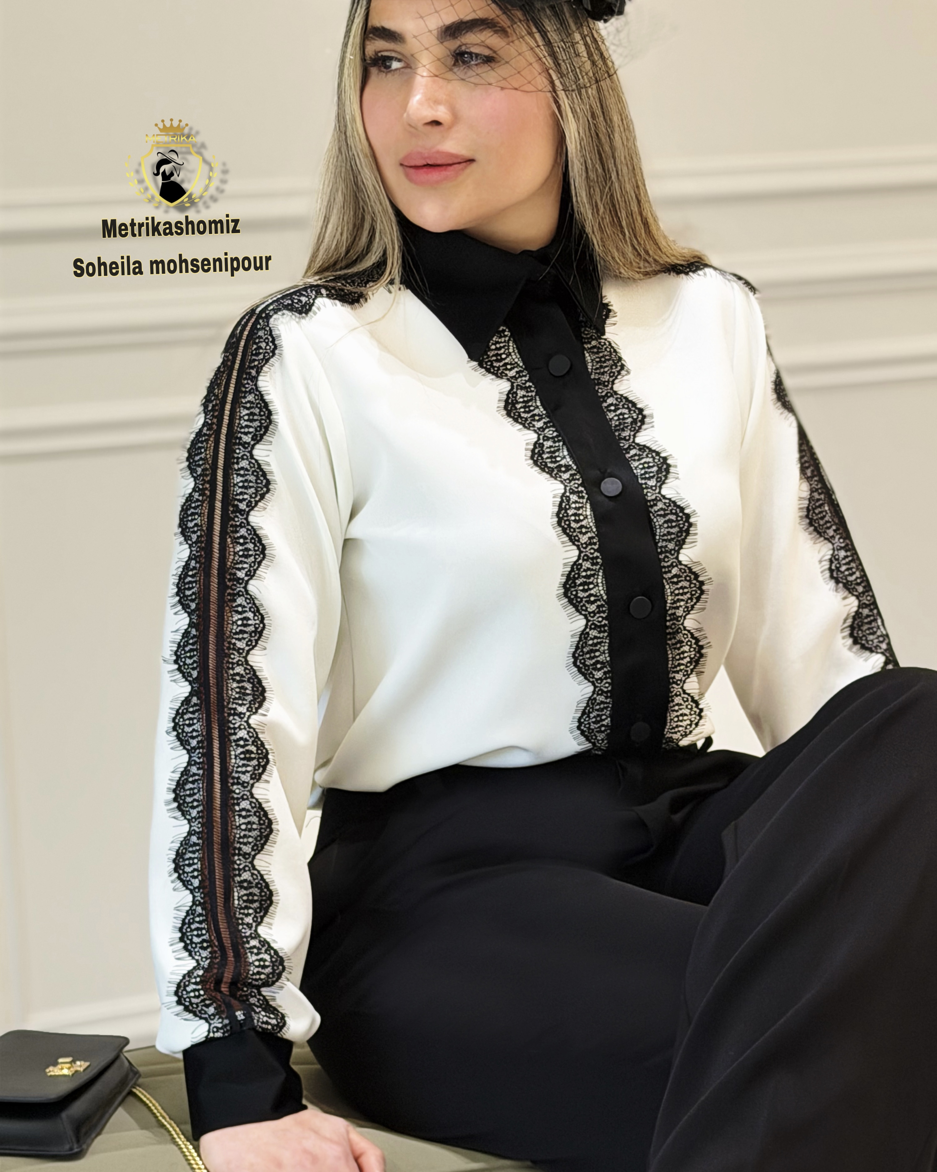شومیزمشکی زنانه ساتن با اپلیکه جواهردوزی کد۲